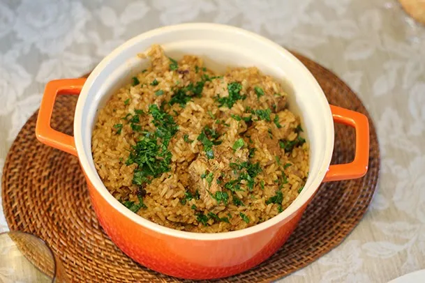 Assim que a costelinha estiver desfiando e soltando o osso, leve-a novamente para o fogão, adicione duas xícaras de arroz e a quantidade de água necessária, de acordo com os líquidos da carne que ficaram na panela. Deixe o arroz cozinhando até obter o ponto ideal, desligue e deixe descansando por alguns minutos. Salpique salsinha e sirva quente.