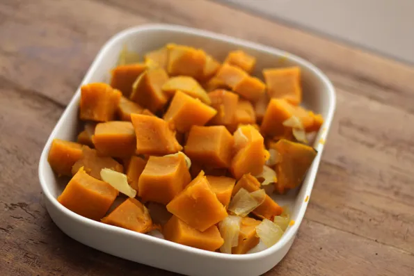 Esta é uma receitinha muito simples, mas sei que muitas pessoas não conhecem essa maravilhosa opção, moranga assada é simplesmente deliciosa, os cubos ficam desmanchando, mas continuam inteiros e lindos.